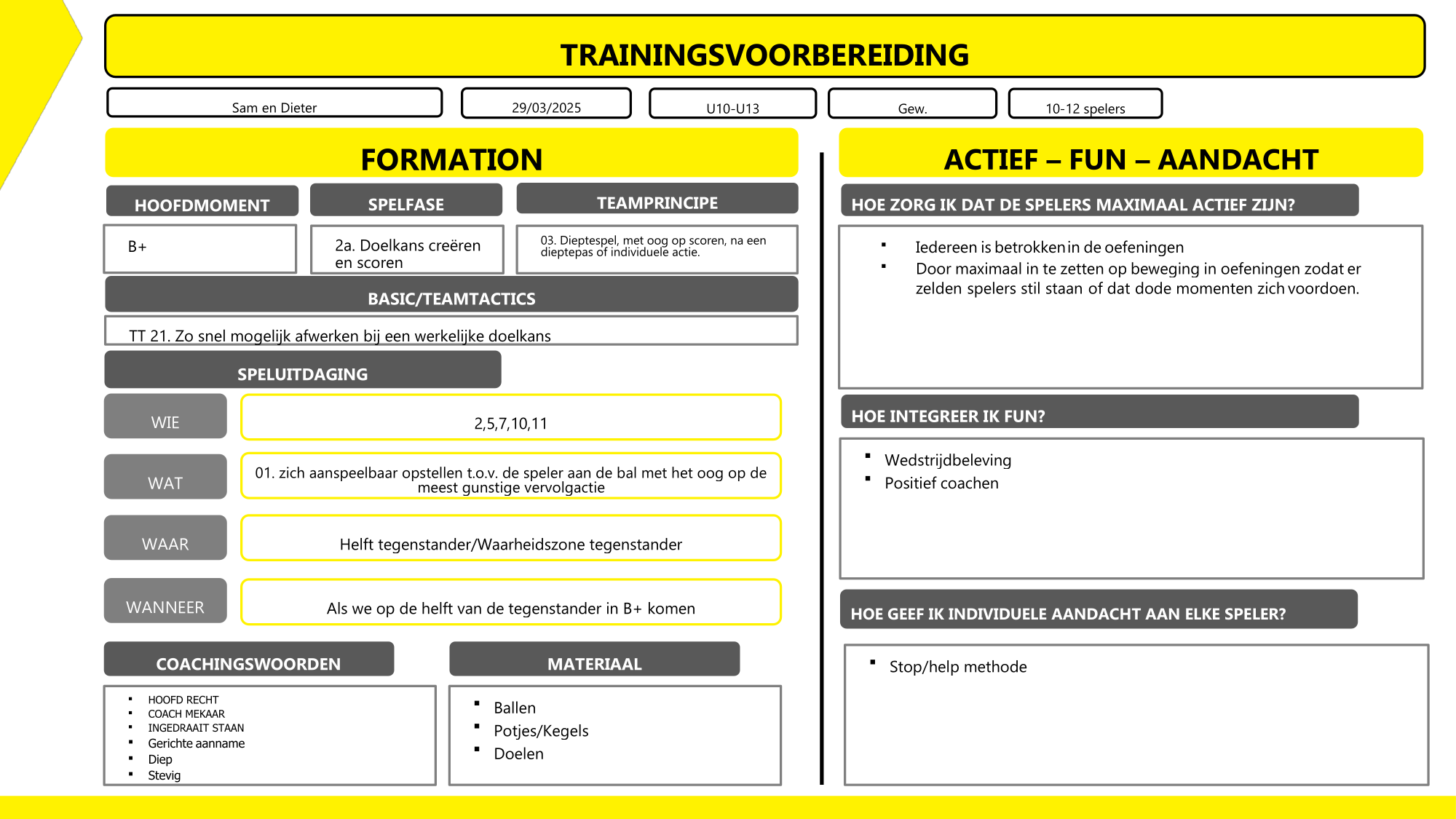 Thema: TT+22 Offensieve anticipatie : de hoogst opgestelde spelers lopen zich vrij net voor balrecuperatie