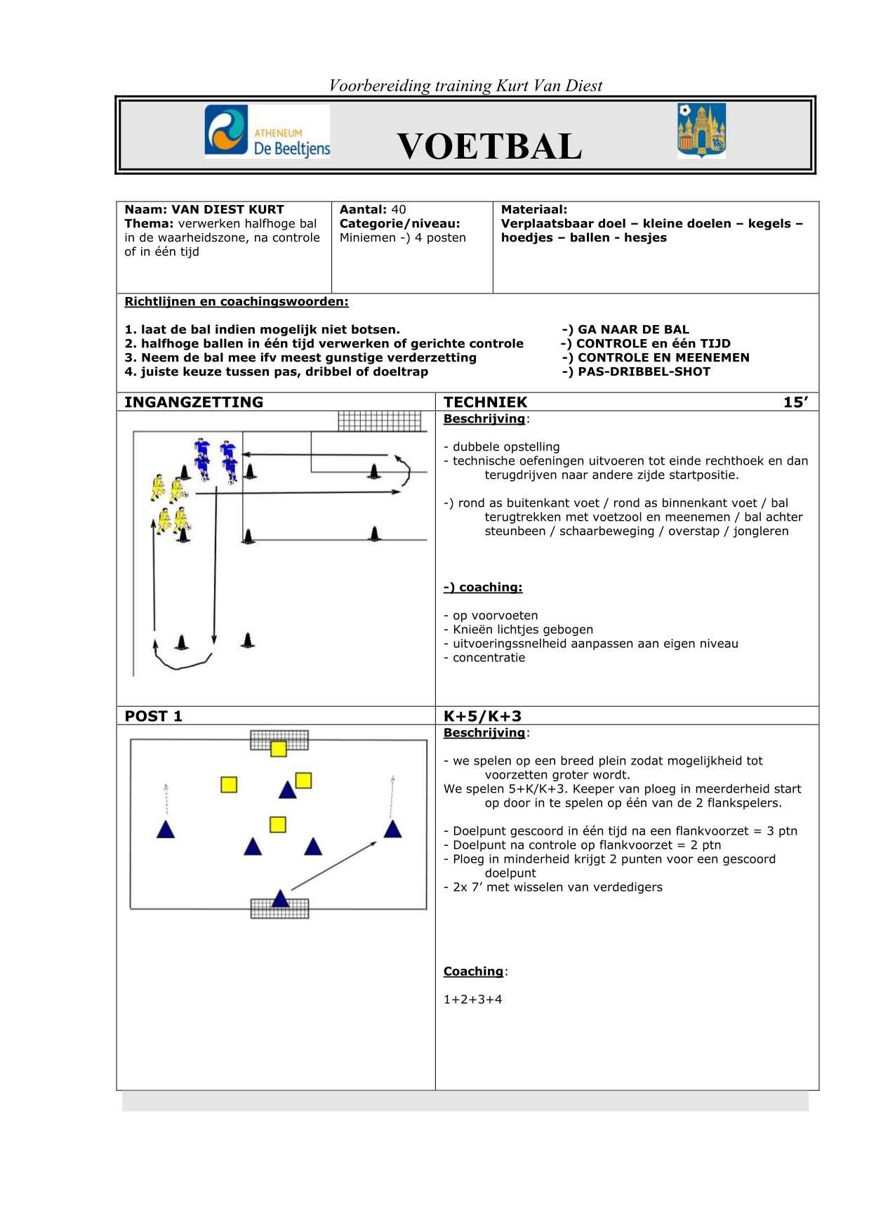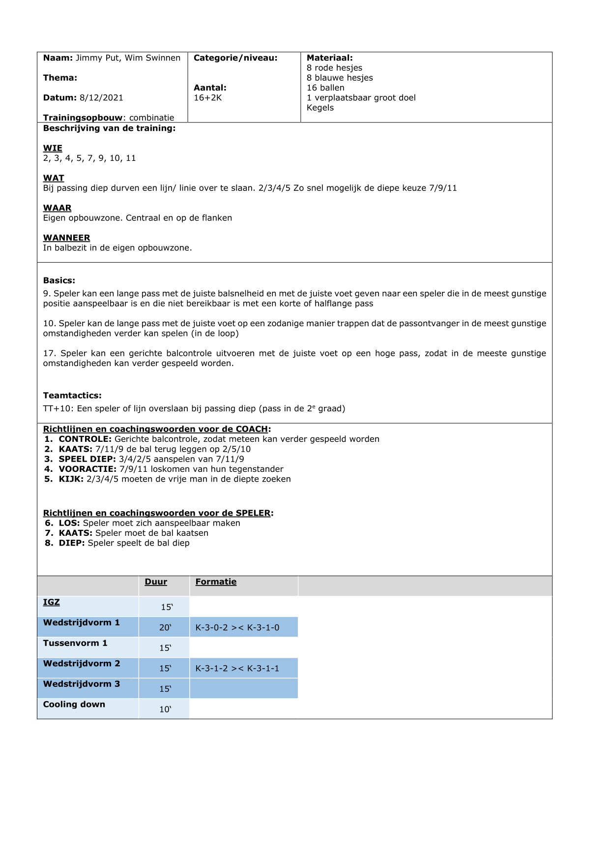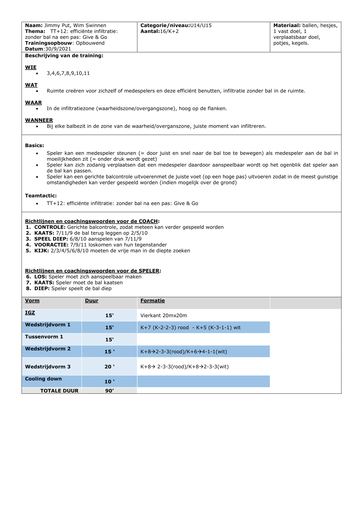 TT- 18a: Efficiënte bezetting voor doel bij voorzet: Defensieve t vorm (2+1)