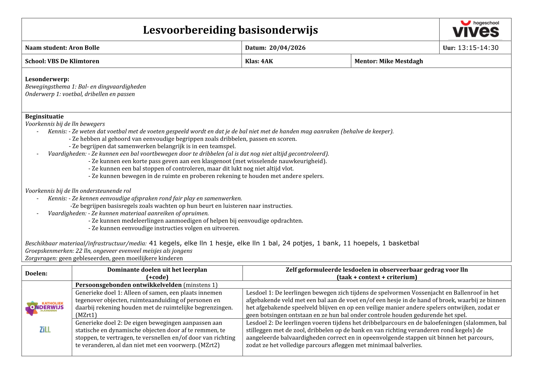 Les-LO dribbelen & passen 4e leerjaar