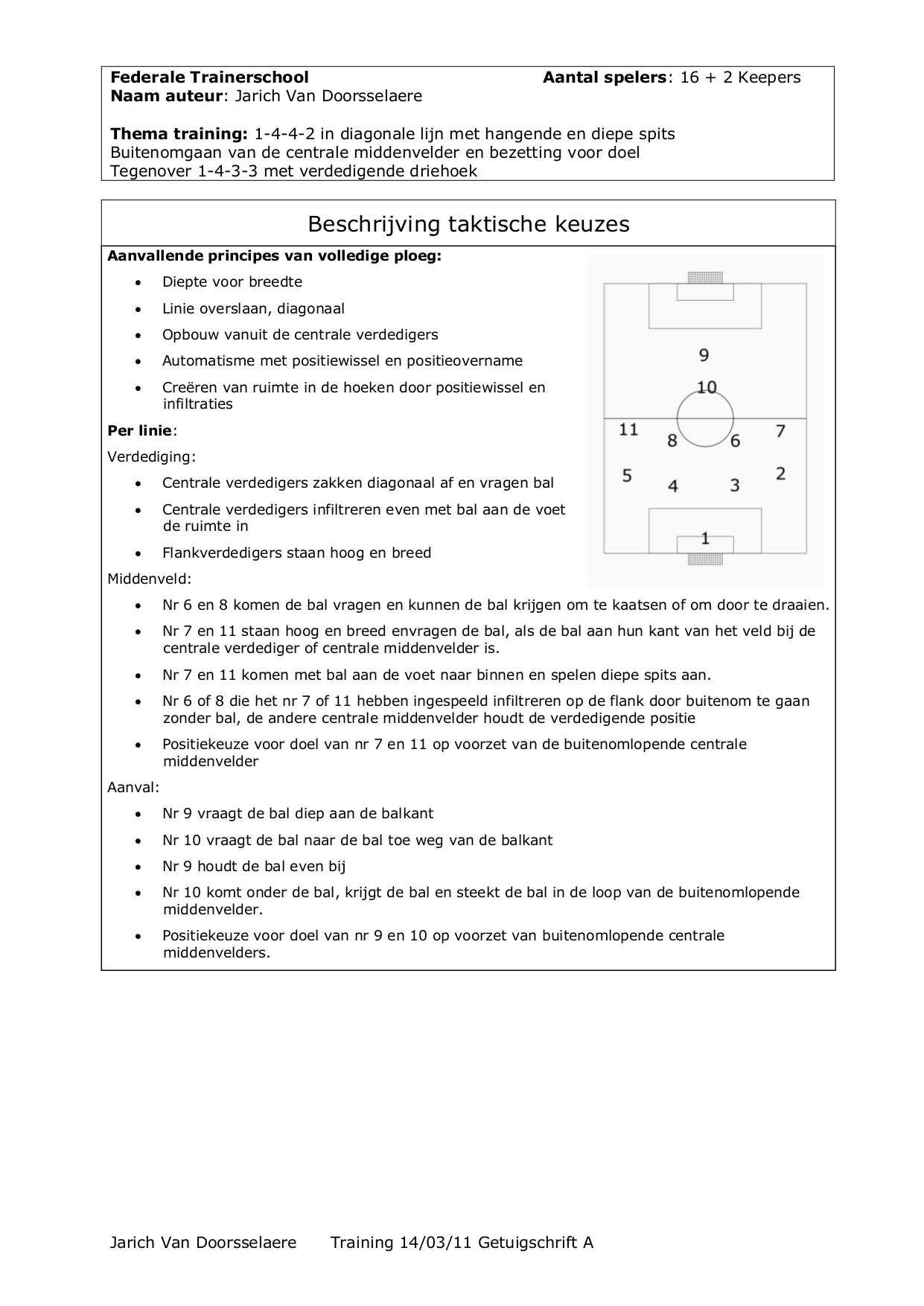 1-4-4-2 in diagonale lijn met hangende en diepe spits Buitenomgaan van de centrale middenvelder en bezetting voor doel Tegenover 1-4-3-3 met verdedigende driehoek