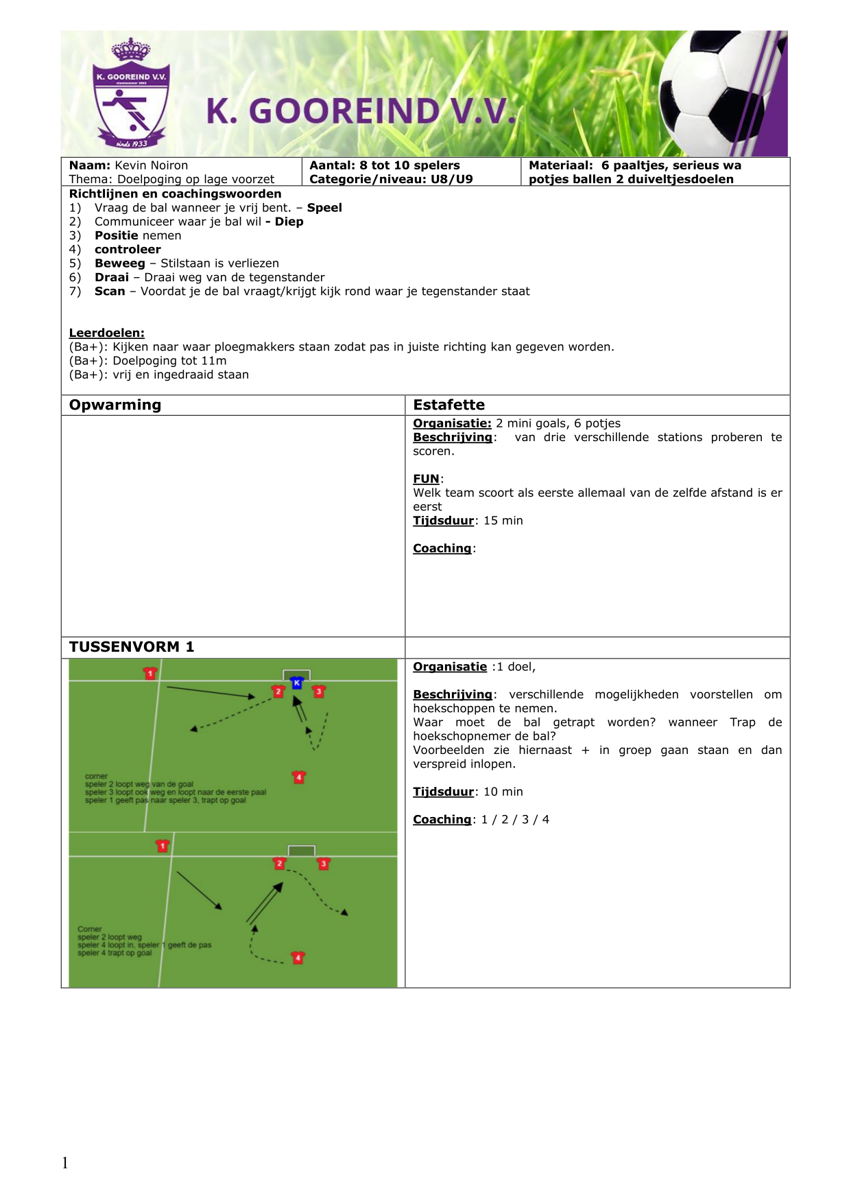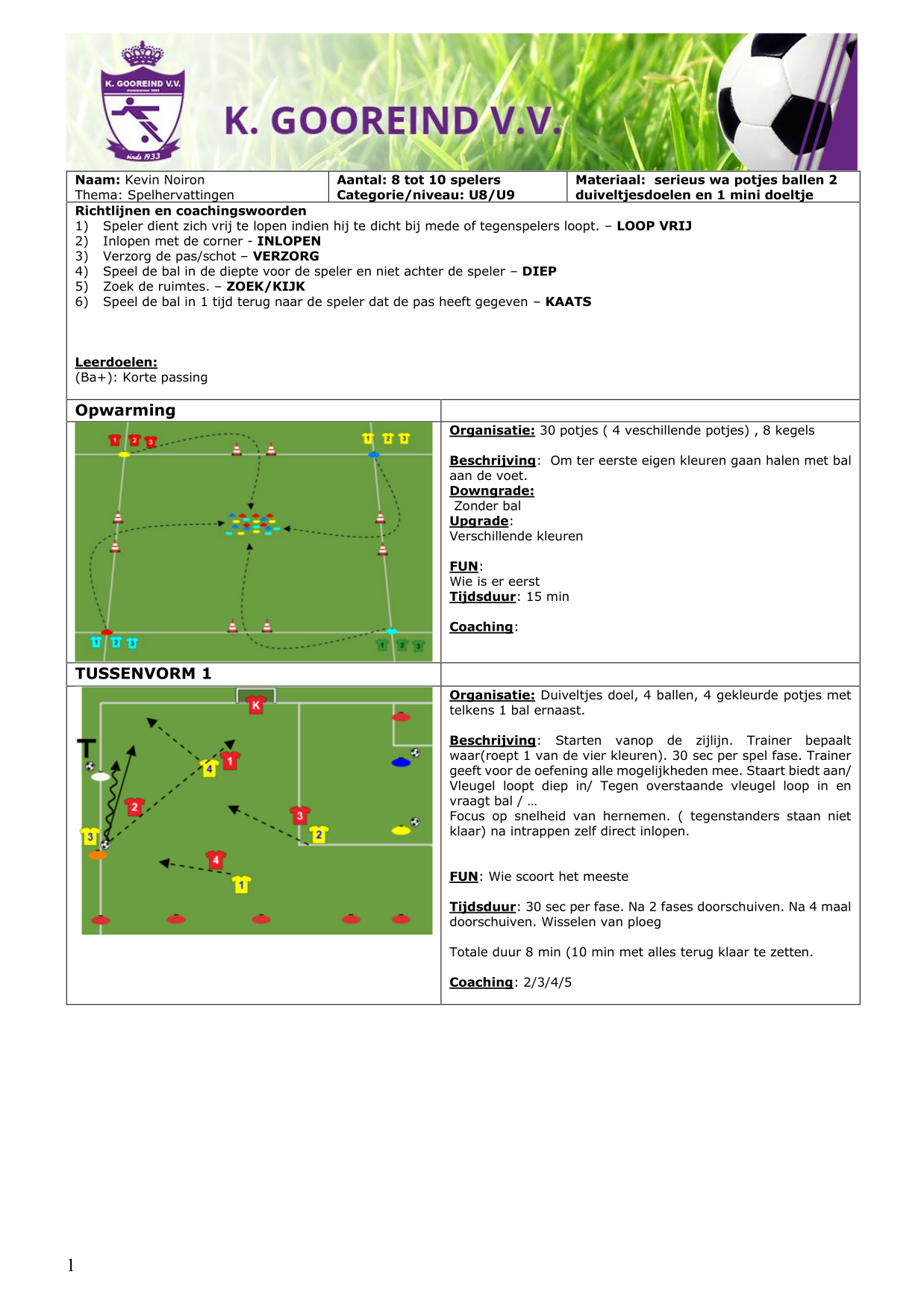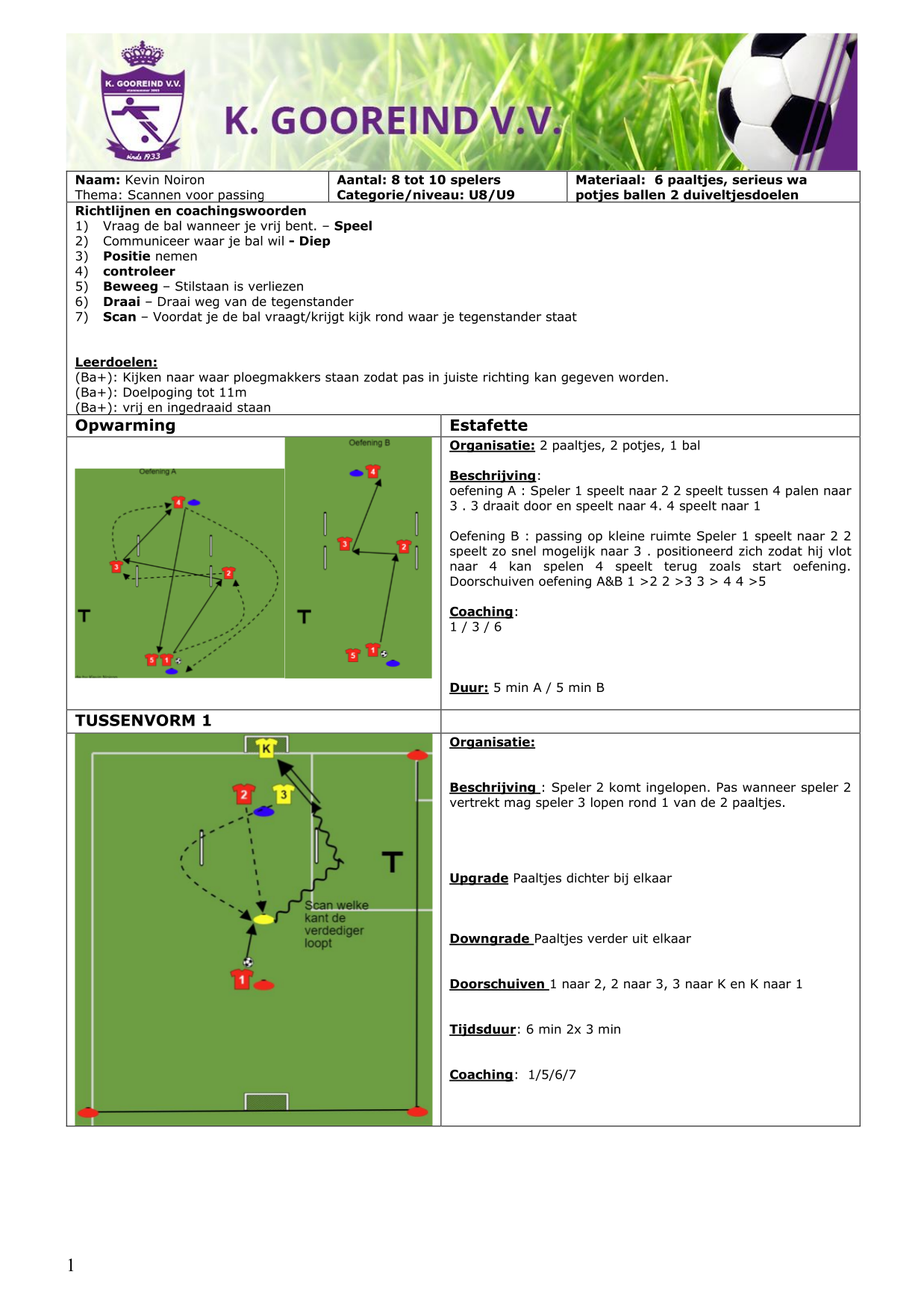 Passing: Kaats/ speel / loop vrij om tot scoren.