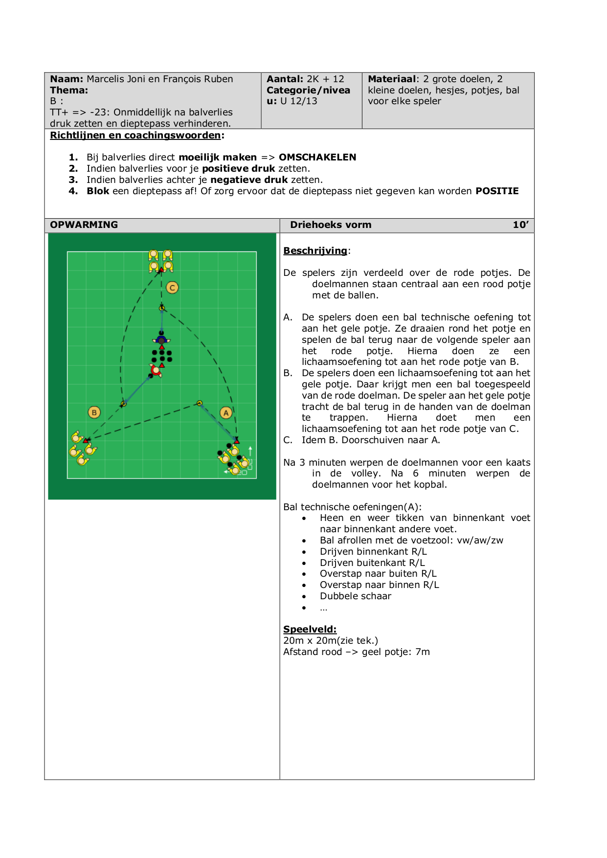 onmiddelijk druk zetten na balverlies + dieptepass vermijden