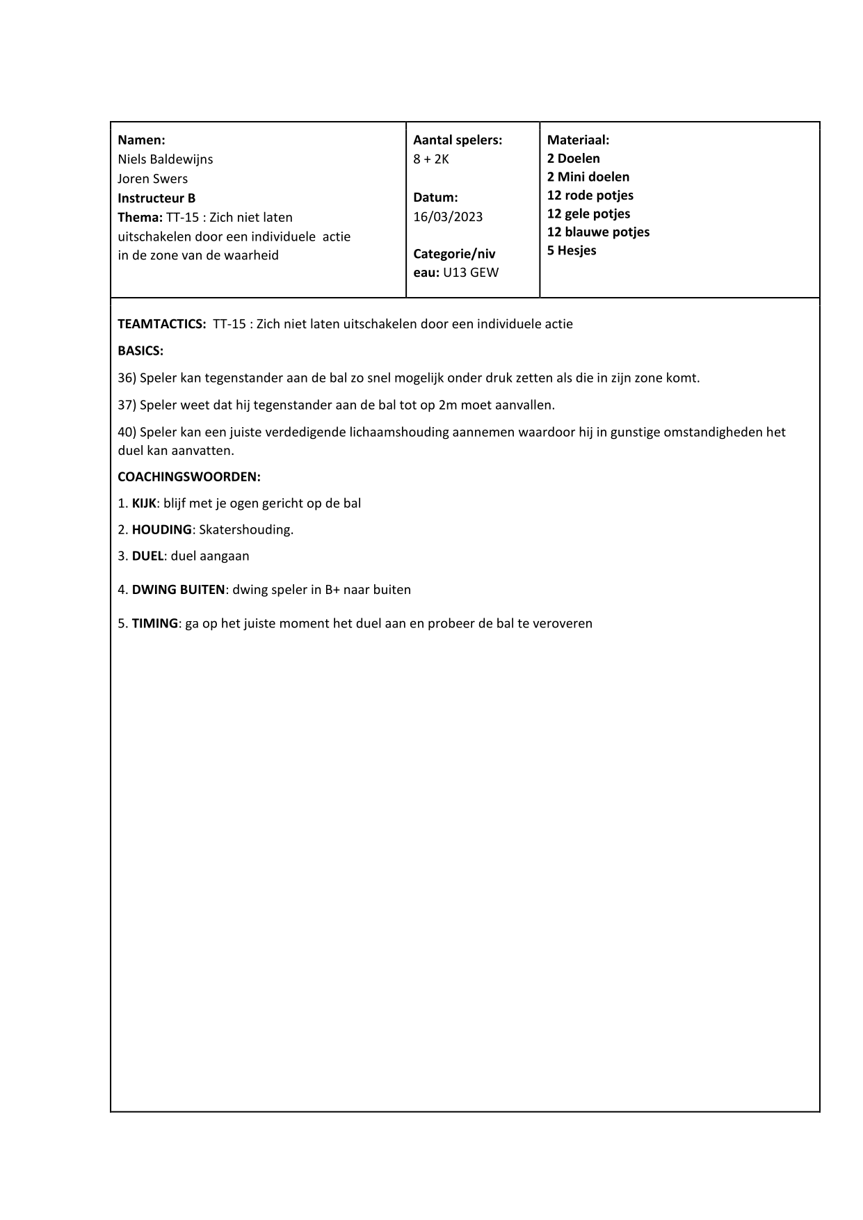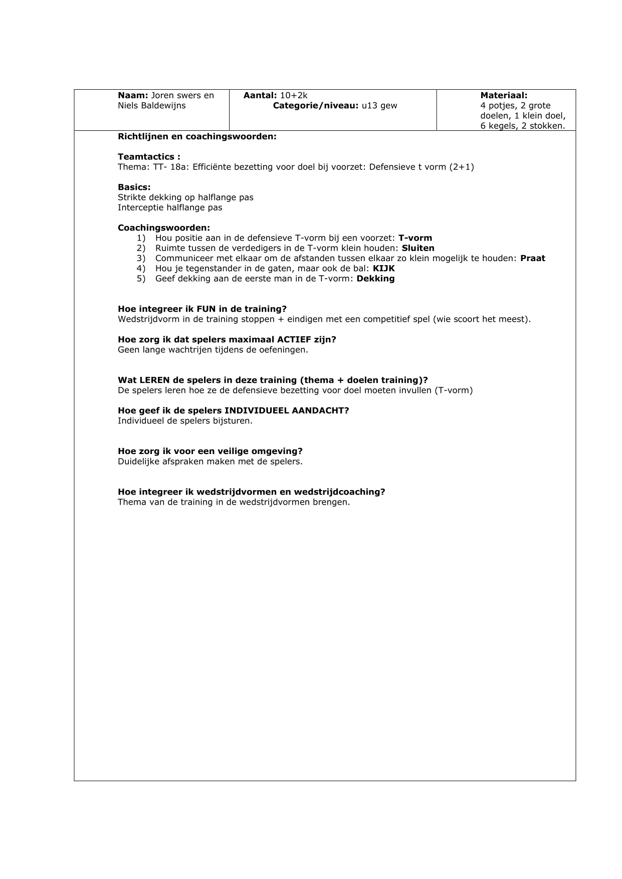 TT- 18a: Efficiënte bezetting voor doel bij voorzet: Defensieve t vorm (2+1)