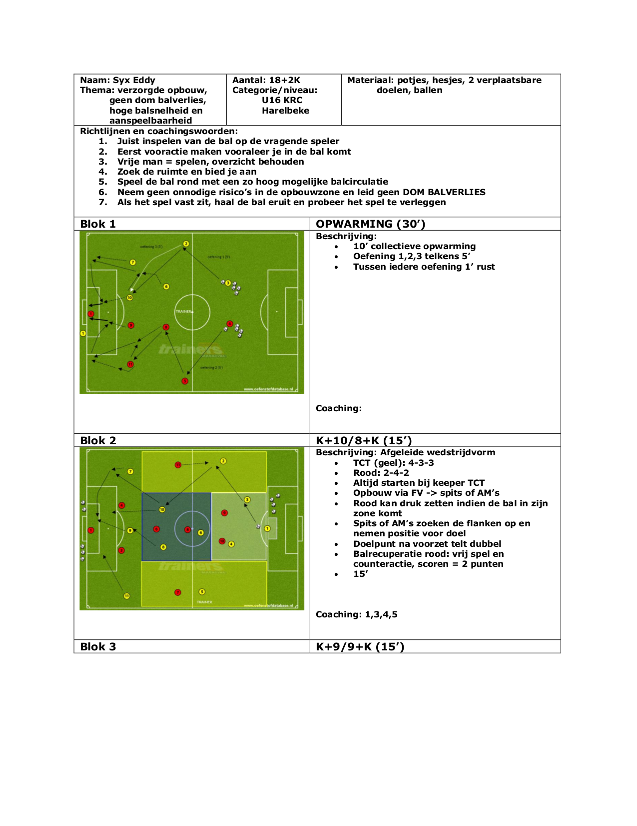 U14, U15, U16, U17, U18, U19, U21, 1ste elftal, keepers